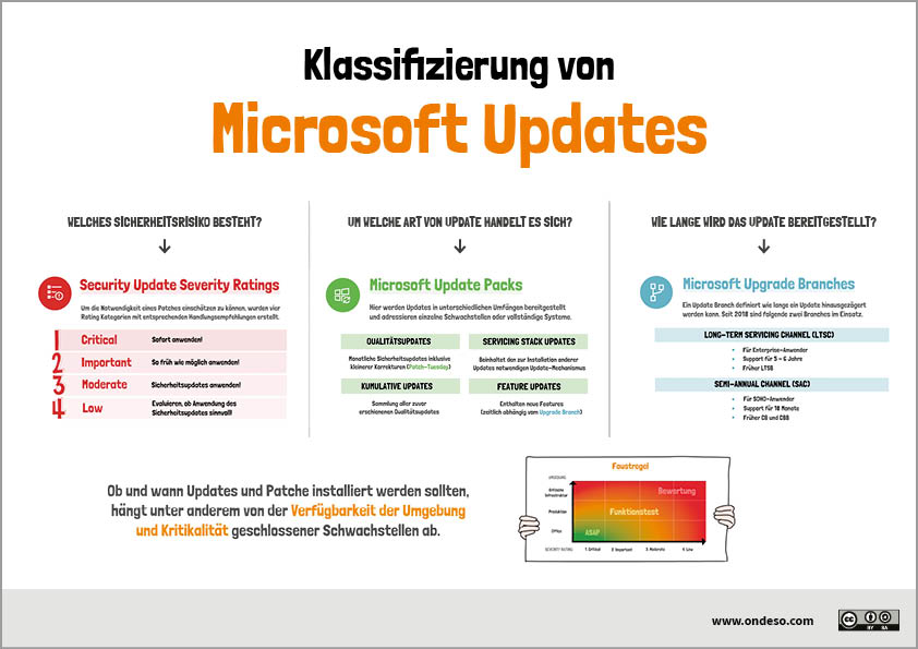Vor Windows 2000 SP3 wurden Updates von Microsoft in sogenannten Security Rollup Packages und Service Packs organisiert [1]. So wurden in längeren, mehr oder weniger unregelmäßigen Abständen diverse Fehler behoben und neue Funktionen eingeführt, was eher einem umfangreichen Upgrade entsprach als einem dedizierten Patch für ein konkretes Problem. Mangels flächendeckend verfügbarem Breitbandausbau wurden diese teils sogar auf Medien bereitgestellt, z. B. auch über Heft-CDs bekannter Computermagazine. Mit dem Feature der „automatischen Aktualisierungen“ (später Windows Update Agent) stellte Microsoft seit 2002 eine Möglichkeit bereit, einzelne Updates automatisiert im Hintergrund bereitzustellen und installieren zu lassen. Parallel wurden mit dem SUS (Software Update Services) und dem Nachfolger WSUS (Windows Server Update Services – zwischenzeitlich auch MUS und WUS[2]), welcher seit Windows Server 2003 enthalten ist, ein Dienst bereitgestellt, um Updates lokal in der Firma bereitzustellen und freigeben zu können. Seither fiebern viele Administratoren dem zweiten Dienstag im Monat, dem sogenannten „Patch Tuesday“ entgegen, an dem Microsoft neue Updates bereitstellt. Patche, die ungeplant außerhalb des regulären Rhythmus notwendig und kurzfristig veröffentlicht werden, bezeichnet Microsoft aktuell als Out-of-Band-Updates (OOB).