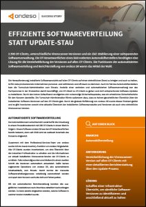 2.500 OT-Clients, unterschiedliche Virenscanner-Versionen und ein Ziel: Etablierung einer zeitsparenden Softwareverwaltung. Die OT-Verantwortlichen eines DAX-notierten Automobilherstellers benötigten eine Lösung für die Vereinheitlichung der Versionen auf allen OT-Clients. Die Funktionen der automatisierten Softwareverteilung und Berichterstellung von ondeso SR waren das Mittel der Wahl.